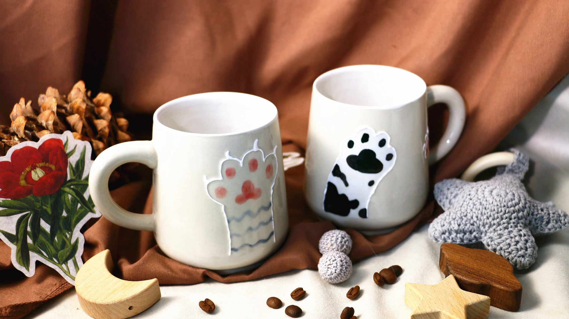 Cat Paw Ceramic Coffee Mug, Personalized Handmade Pottery Mug for Gifts