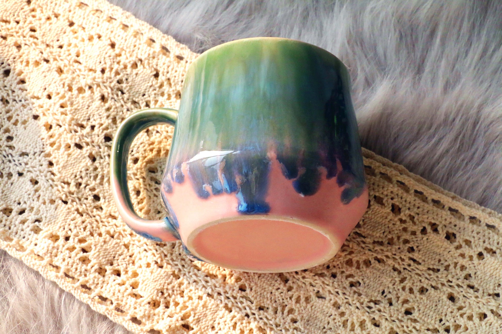 The flowing glaze creates a mesmerizing effect, making each mug one-of-a-kind.