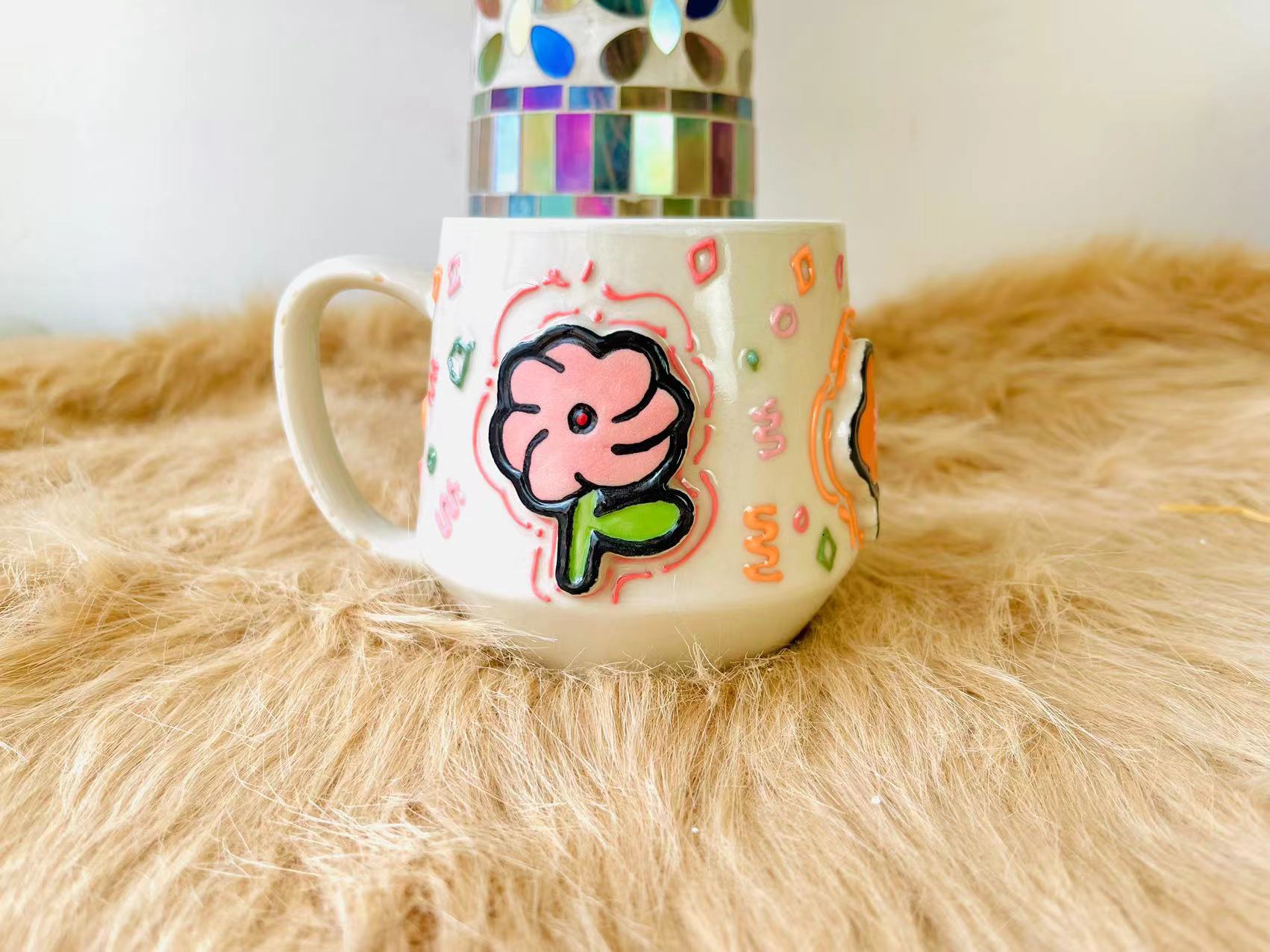 Cute Floral Ceramic Coffee Mug, Personalized Handmade Pottery Cup for Gifts