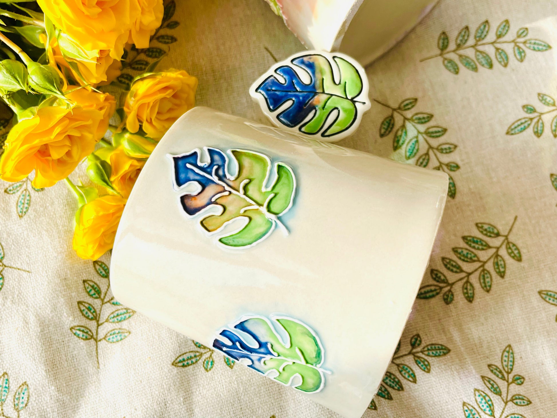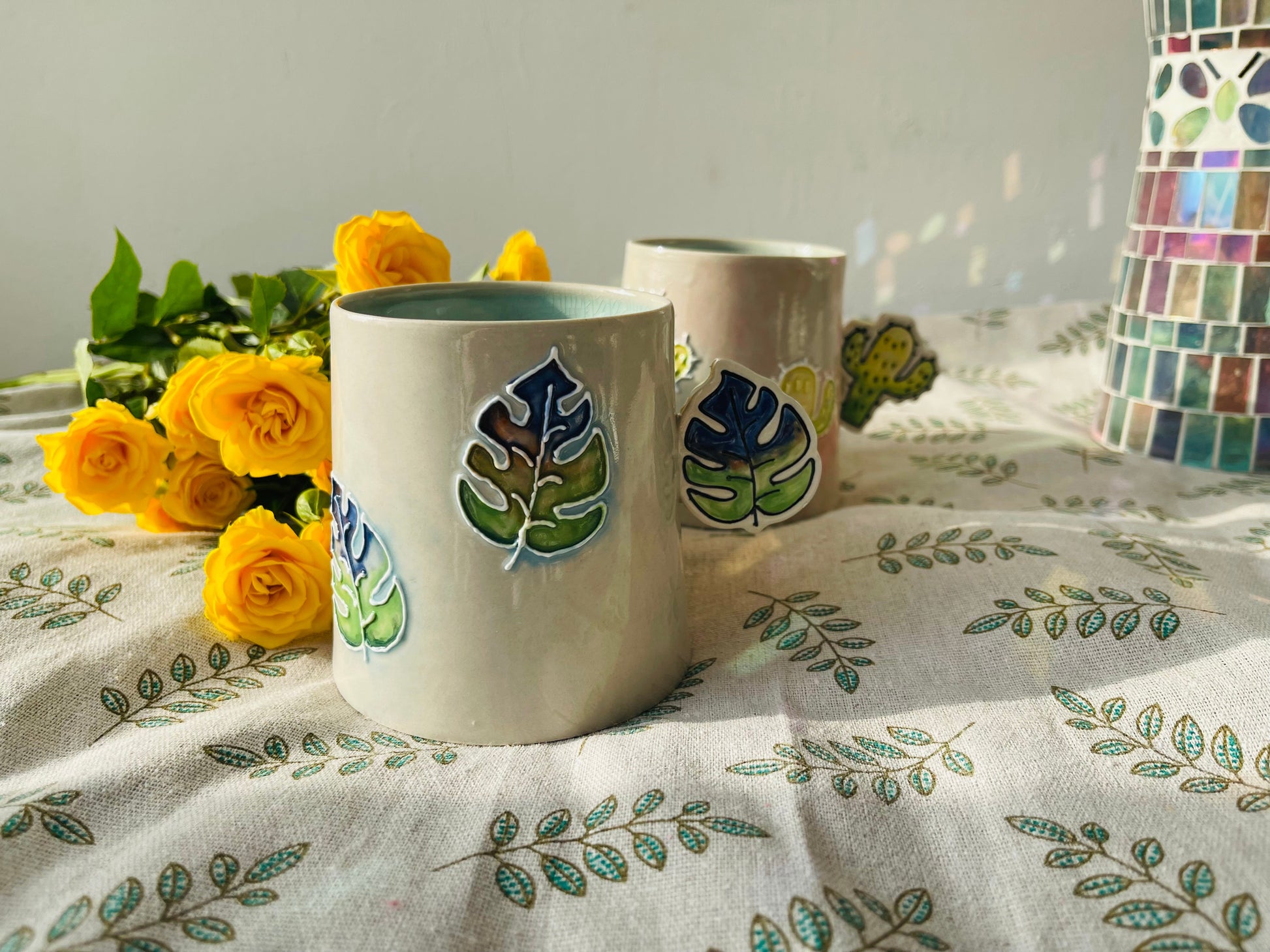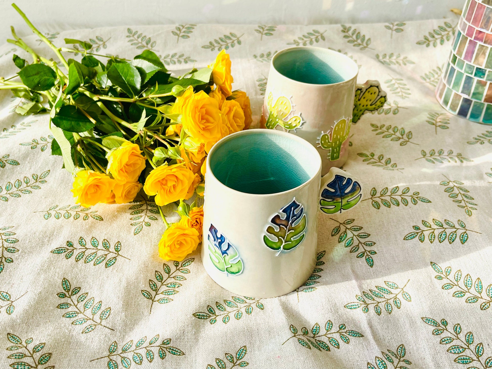 Hand-Painted Leaves&Cactus Ice Crack Glaze Ceramic Mugs
