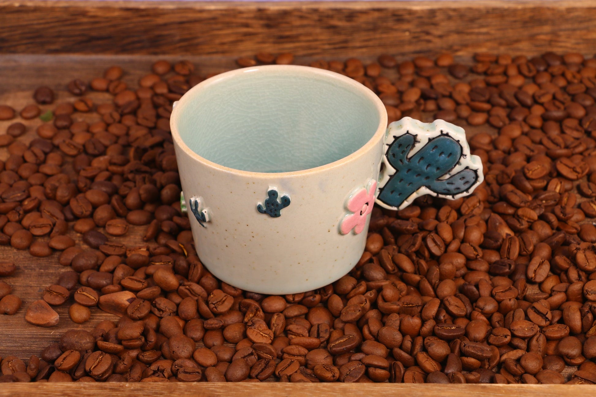 Handmade Cactus Ice Crack Glaze Ceramic Mugs for Housewarming Gifts