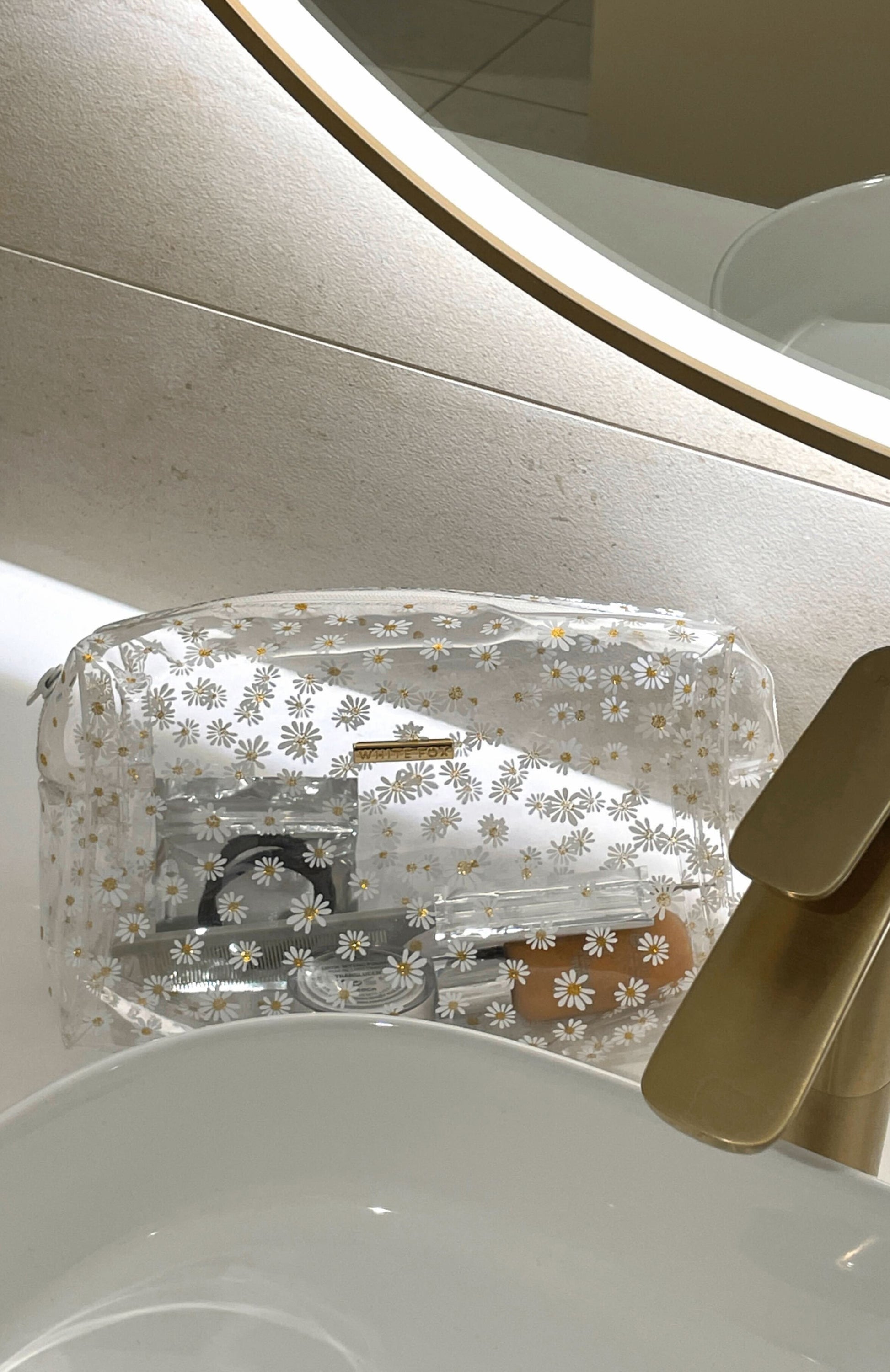 The Make it work Case Clear is the cosmetic bag you didn't know you needed. Keep your beauty products snug and organised; an essential for your everyday that fits all of your favourite beauty products.. We're obsessed! Daisy printed, featuring zipper closure, clear PVC case and White Fox logo centre front.