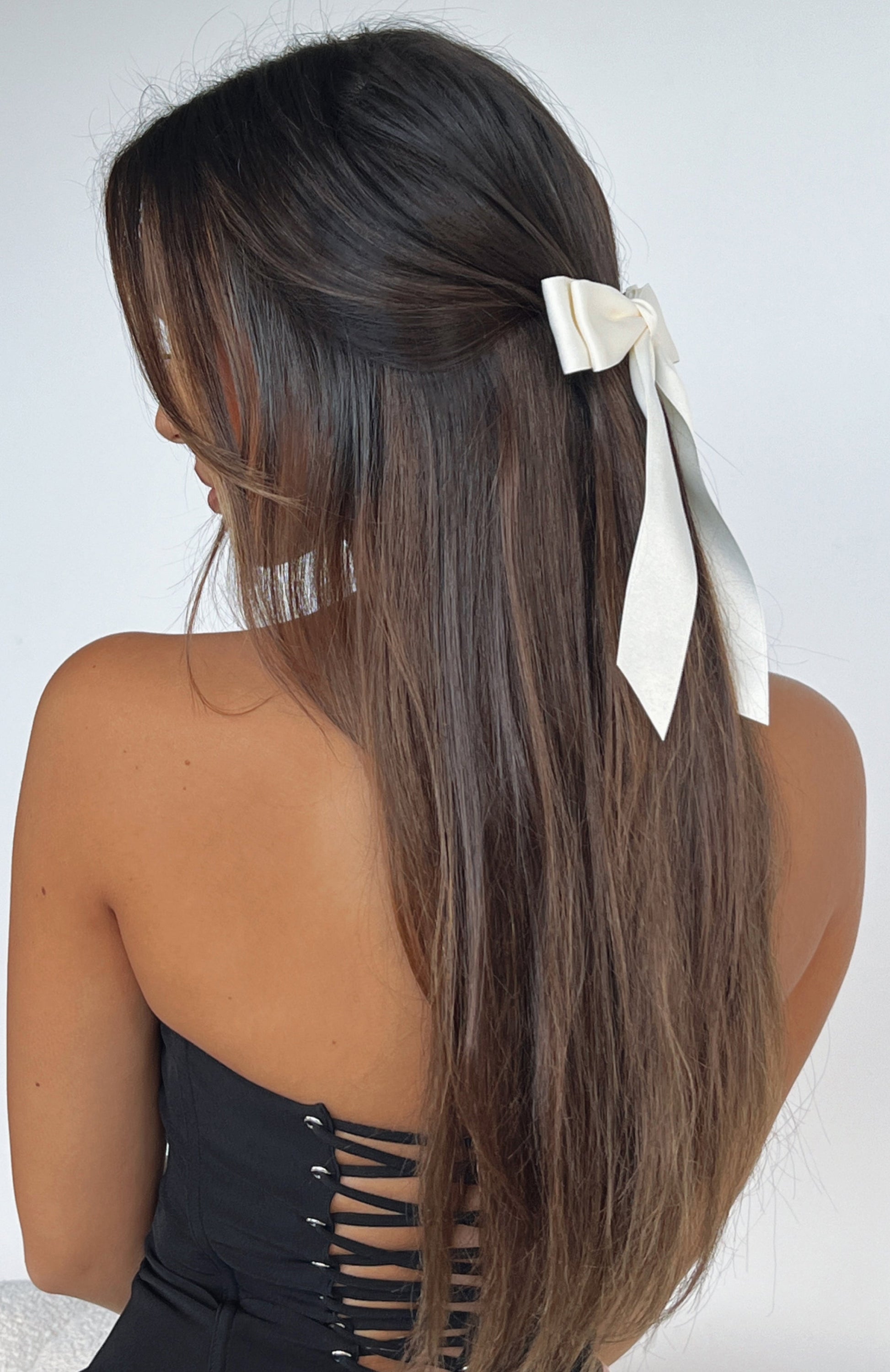 The Sweet Serenity Bow Hair Clip Cream is the finishing touch your outfit is after! Slide it into a fringe or ponytail, or secure it in a half-up-do. We're in love!